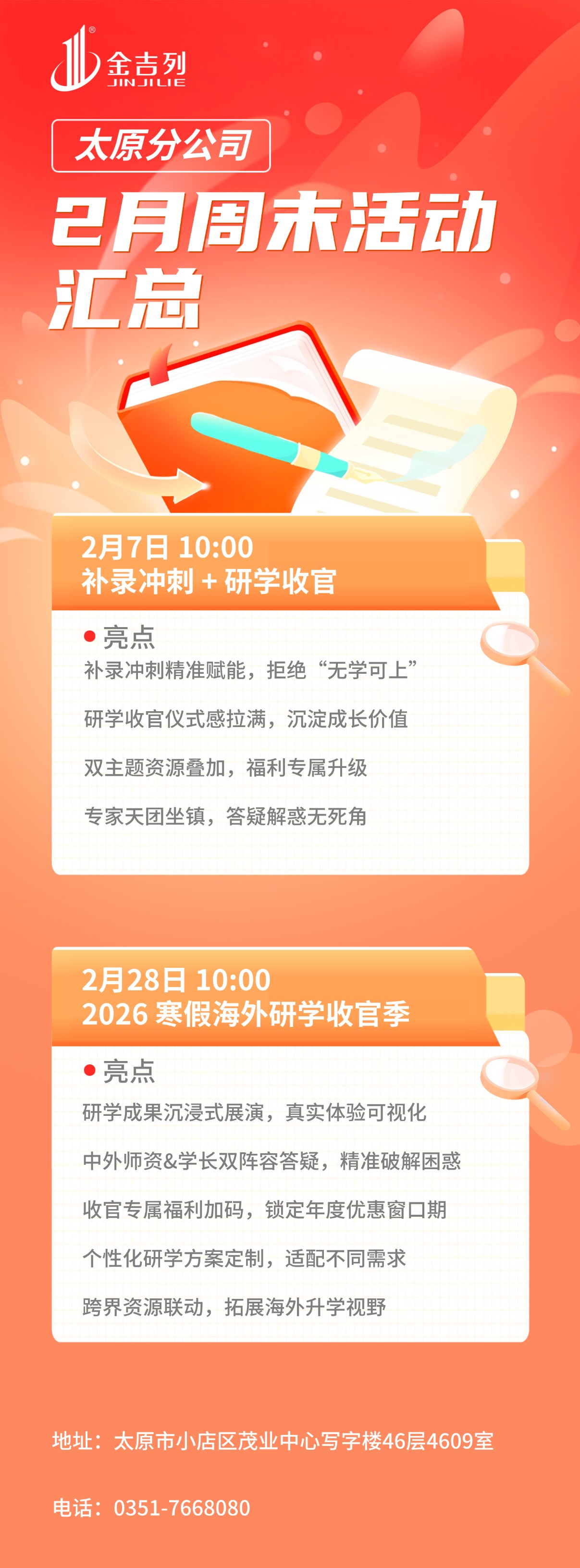 讲座地点: 金吉列留学太原分公司(太原市小店区茂业中心写字楼46层4609室)
