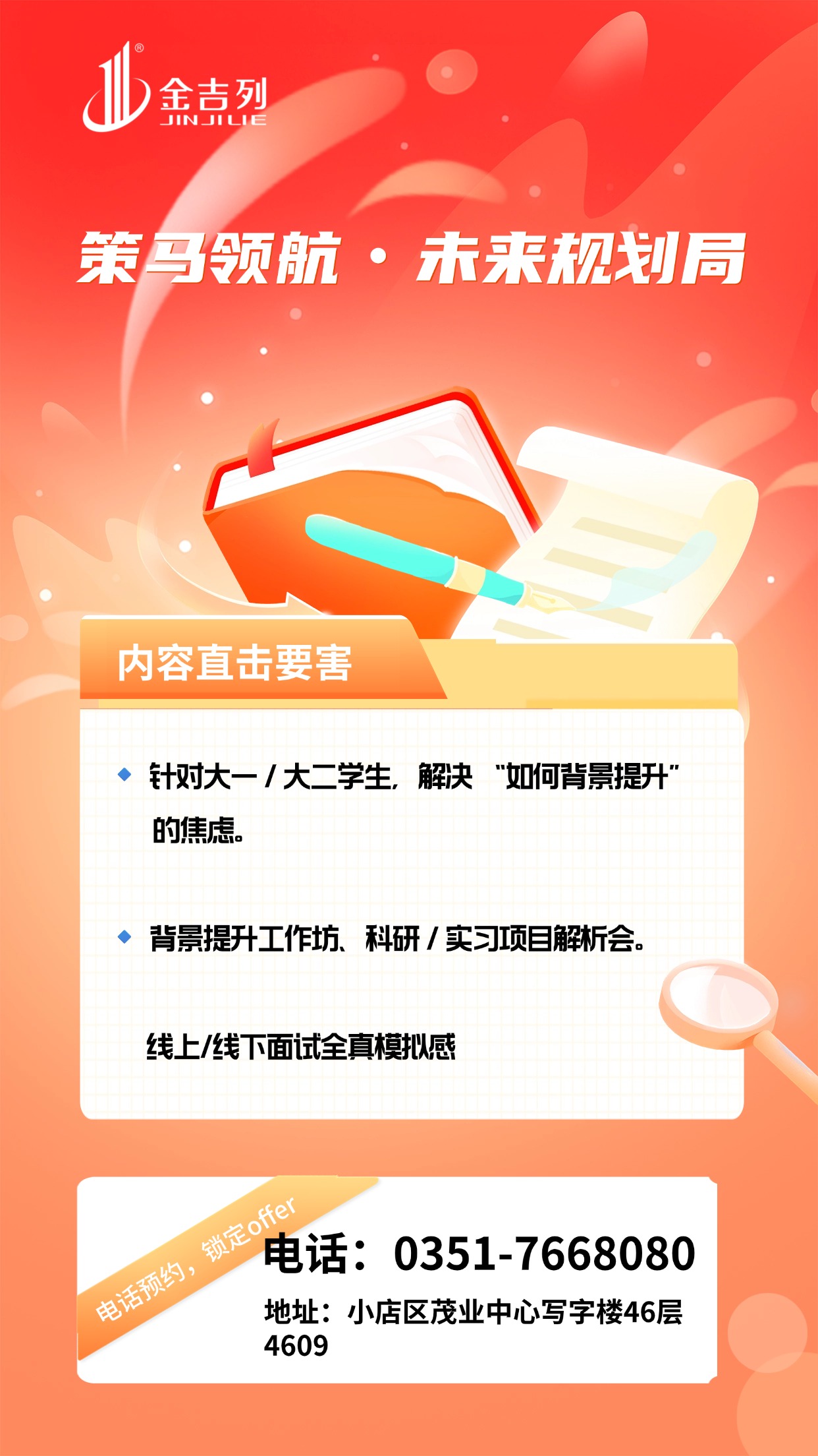 讲座地点: 金吉列留学太原分公司(太原市小店区茂业中心写字楼46层4609室)