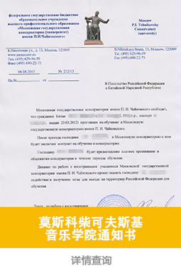 录取院校:莫斯科柴可夫斯基音乐学院