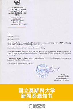 录取院校:莫斯科国立大学