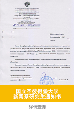 录取院校:圣彼得堡国立大学预科系