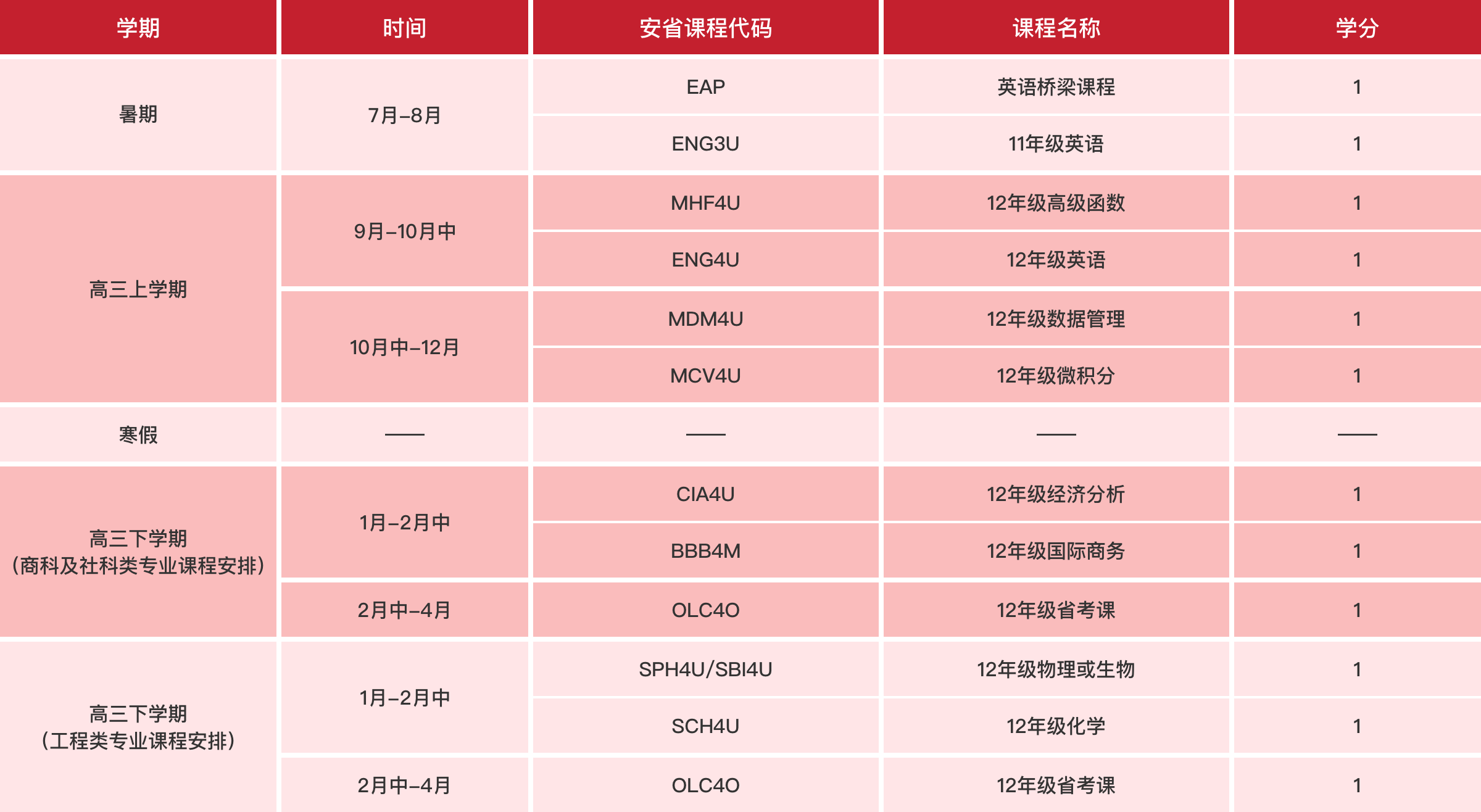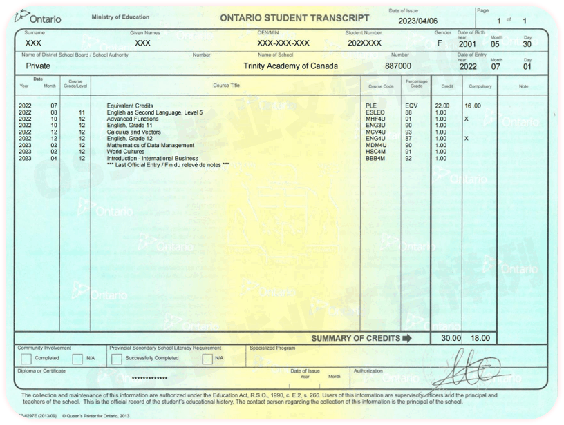灵活转换学分:加拿大安省高中共四年(9-12年级),学生可选择在国内读完完整的学期/学年后转学分进入OSSD体系中继续学习