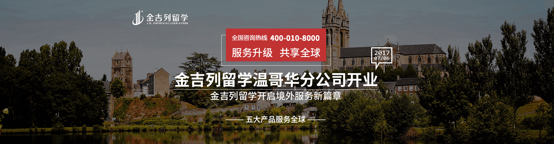 2017年7月,金吉列温哥华公司正式成立,这是金吉列留学实施国际化战略,成为全球教育集团的重要里程碑。金吉列温哥华公司成立后,将从英语培训课程、文化课补习,到高端名校申请、各类签证服务、升转学规划、寄宿家庭安排、国际学生报税、专车翻译服务、实习就业推荐、移民办理等方面为客户提供服务,这意味着金吉列留学将全方位一体化地跟进学生学习、生活过程中的一切事宜。